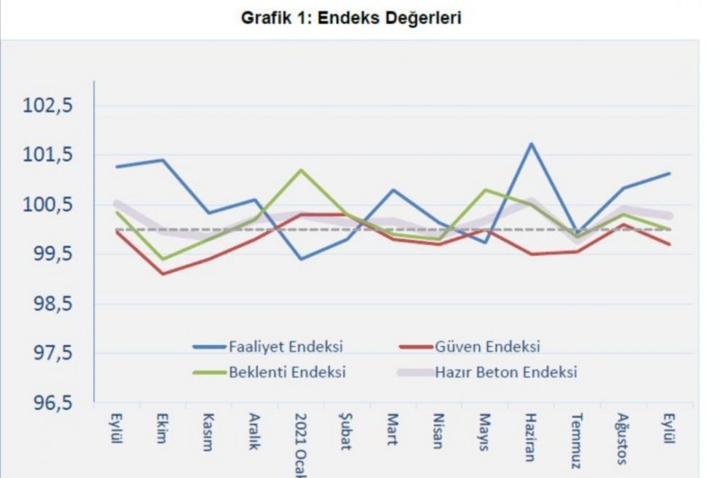 Türkiye Hazır Beton Birliği (THBB), her ay merakla beklenen inşaat ve bununla bağlantılı imalat ve hizmet sektörlerindeki mevcut durum ile beklenen gelişmeleri ortaya koyan "Hazır Beton Endeksi" 2021 Eylül Ayı Raporu'nu açıkladı. 2021 yılı ağustos ayından sonra eylül ayında da faaliyette bir yükseliş görülmektedir. Faaliyette görülen bu harekete rağmen Beklenti Endeksi son bir ayda azalma göstermiştir. Uzun dönemli toparlanmanın göstergesi olan Güven Endeksi ise eylül ayında eşik değerin hemen altında bir değer almıştır.