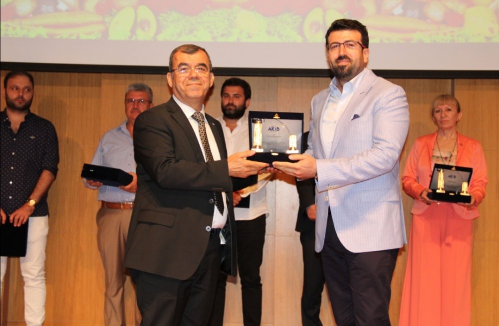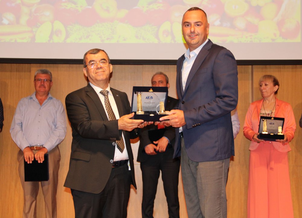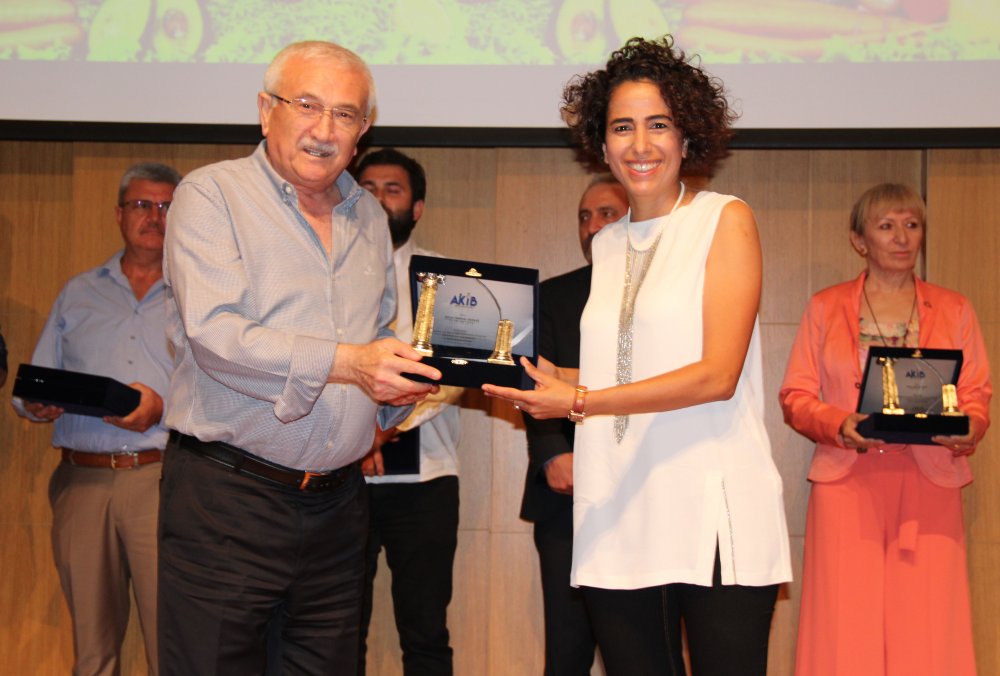 Akdeniz İhracatçı Birlikleri (AKİB) Koordinatör Başkanı ve Akdeniz Yaş Meyve Sebze İhracatçıları Birliği Yönetim Kurulu Başkanı Nejdat Sin ile duayen ihracatçılar, başarılı yaş meyve sebze ihracatçılarına plaketlerini alkışlar eşliğinde takdim etti.