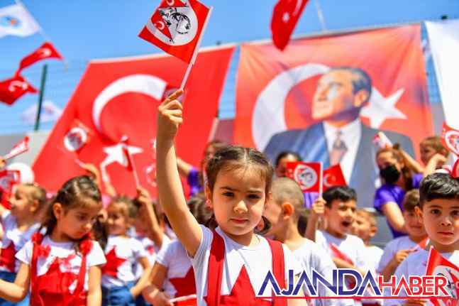 Mersin Büyükşehir Belediyesi’nin Toptancı Hal Kompleksi’nde yer alan Münir Özkul Kreşi’nde ‘23 Nisan Ulusal Egemenlik ve Çocuk Bayramı’ coşkusu yaşandı. 23 Nisan Ulusal Egemenlik ve Çocuk Bayramı’nın 102. yıl dönümü kapsamında gerçekleştirilen kutlama programında, Türk bayrakları ile donatılan kreşte minikler şarkılarını söyleyip, dans gösterisi yaptı.