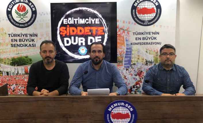 Mersin Eğitim Bir-Sen Şubesi binasında düzenlenen basın açıklamasına çok sayıda okul yöneticisi, öğretmen ve sendika üyelerinin katıldığı basın açıklamasında, Eğitim Bir-Sen 1 No'lu Şube Başkanı Abdulla Çelik Öğretmen karşı yapılan şiddetin biran önce önlenmesi için gerekli kanunların çıkarılması gerektiğini söyledi.