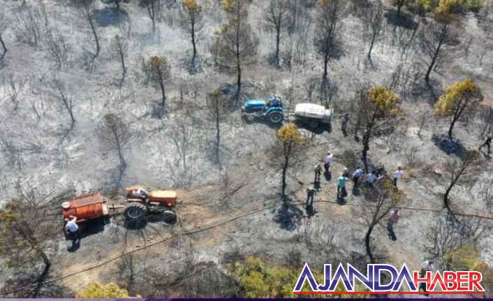 Manisa Saruhanlı'daki orman yangini vatandaş ve ekiplerin iş birliği ile söndürüldü: Bölge sakinleri traktörlerinin arkasına bağladıkları su tankerleriyle alevlere müdahale etti.