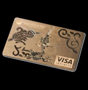 Sberbank'ın Kazakistan'daki en önemli 100 müşterisine Visa işbirliğiyle sunulan karta sahip olmak isteyenlerin 100 bin dolar nakit parası bulunması gerekiyor. Müşteriler 65 bin doları kart ücreti olarak ödeyecek, kalan 35 bin doları ise zorunlu olarak hesabına yatıracak. Manyetik şeridi bulunmayan kartın çipi sayesinde şifre girilerek kullanılabiliyor.