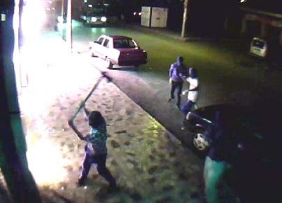 Görüntülerde saldırganlardan biri, müşterilerin kaçması sırasında elindeki benzin bidonunu etrafa dökerek içeri girdiği görülüyor. Bu sırada bir mağaza çalışanı koşarak geri gelip alarm düğmesine basıp, tekrar kaçıyor.