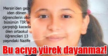 Gençlik etkinlikleri kapsamında Mersin’e düzenlenen geziden dönen öğrencileri taşıyan 31 EV 403 plakalı otobüs önceki gün akşam saat 20.30 sıralarında Hatay’ın Erzin İlçesi’ne bağlı Leçelik Park Alanı çıkışında önünde giden 02 HN 583 plakalı TIR’a arkadan çarptı. Kazada 8′inci sınıf öğrencisi Nazife Pehlivan ve 6′ncı sınıf öğrencisi Zeynep Sine Özyılmaz yaşamını yitirdi, 17 öğrenci yaralandı.