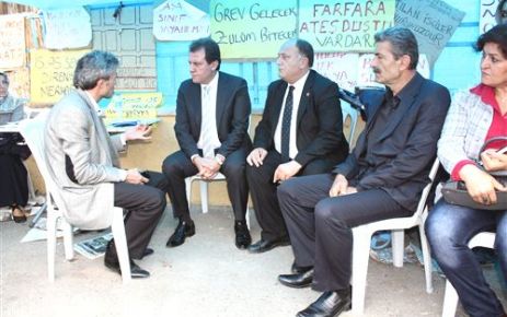 İşçileri ziyaret eden CHP Mersin Milletvekili Vahap Seçer ise sorunların çözümü noktasında elinden gelen gayreti göstereceğini söyledi.