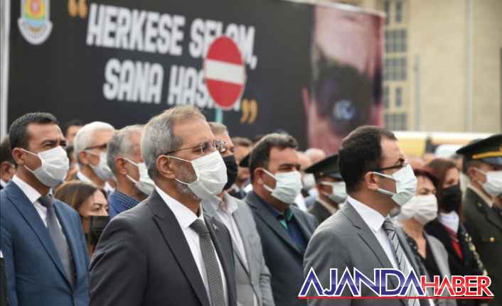 Protokol üyelerinin yanı sıra, gaziler, siyasi parti temsilcileri, belediye meclis üyeleri, muhtarlar, kurum müdürleri, öğrenciler, öğretmenler ve vatandaşların katıldığı anma töreninde çelenk sunumunun ardından saat 09:05'te sirenler eşliğinde 2 dakikalık saygı duruşunda bulunuldu. İstiklal Marşı’nın okunması esnasında göndere çekilen bayraklar yarıya indirildi.