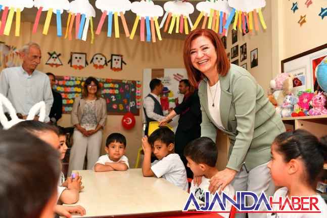 Meral Seçer, Sosyal Hizmetler İlkokulu’nun bahçesinde gerçekleşen tören öncesinde yine aynı okul bahçesinde yer alan MTSO Eğitim ve Kalkınma Vakfı İbrahim Kiper Anasınıflarını da gezdi. Miniklerle sohbet eden Meral Seçer, çocuklara ‘Mersin’i Tanıyoruz’ ve ‘Büyümek İstiyorum-Biz de Çocuktuk 2’ isimli kitaplardan da hediye etti.